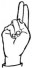 На ћирилици написано КОСТАДИН ПЕРОВ састоји се из 13 слова [?]. Исписано ћириличном једноручном азбуком за глувонеме: